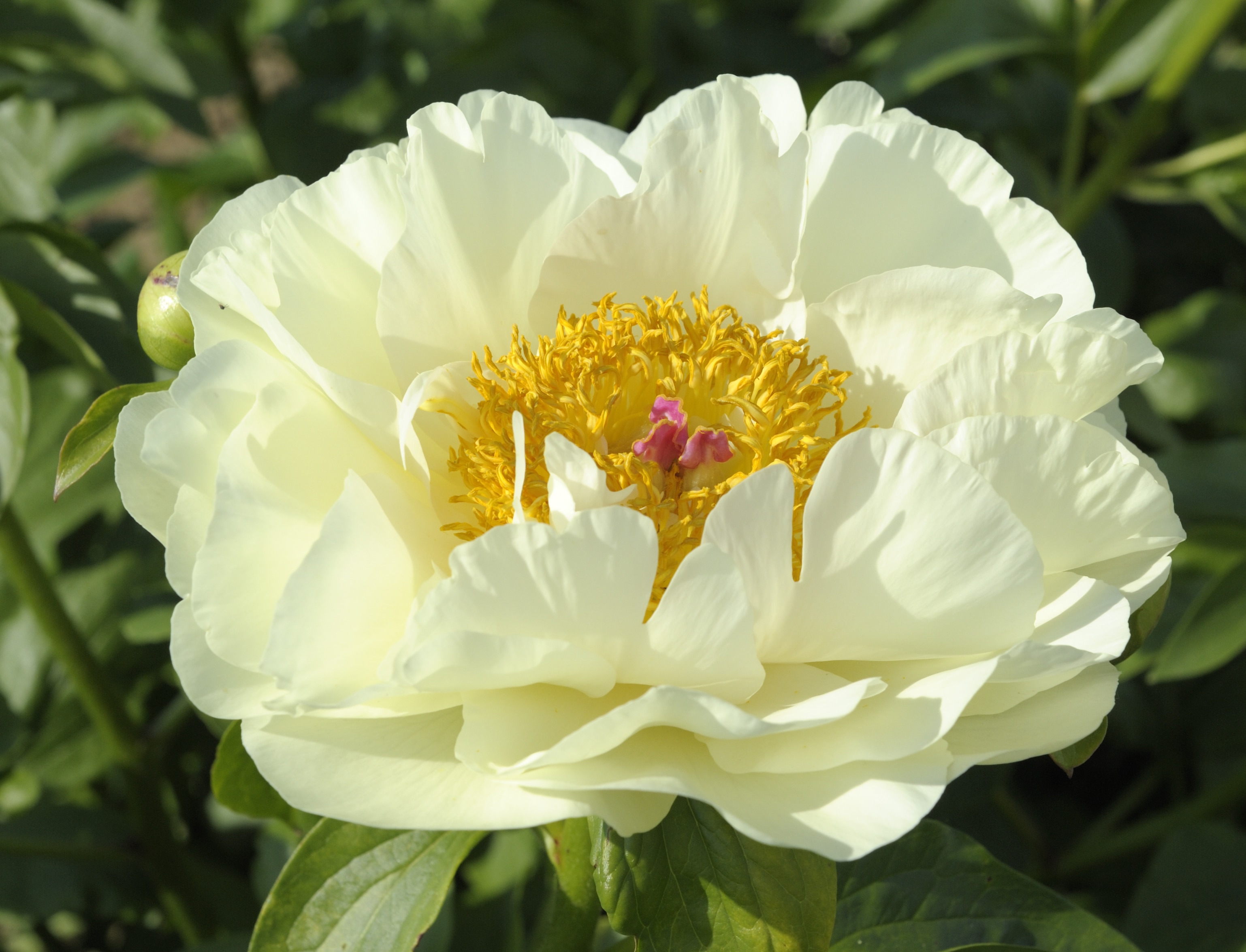 Pivoine très vigoureuse dont la couleur des fleurs, semi-double à double, se situe entre le jaune beurre et le citron.
